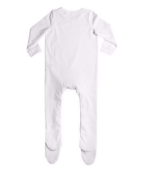 Long-sleeved sleepsuit made in organic cotton. YKK popper fastening on the shoulder and around the leg opening. Set-in feet. Binding around the neck and self-fabric cuff on the sleeve.